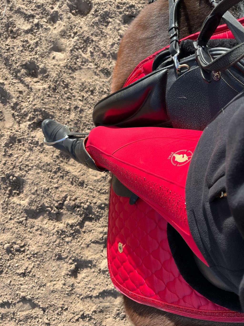 I bought this one the SECOND I saw this drop on the website for presale! I am so glad I did. The beauty of this pad is unmatched against my bay mare's coat. Even better to have the matchy-matchy thing going on with the red Dragon breeches! We turn heads everywhere! This pad is WELL worth the money - the craftsmanship and detailing is exactly what you would expect from Sync. You will not be disappointed!